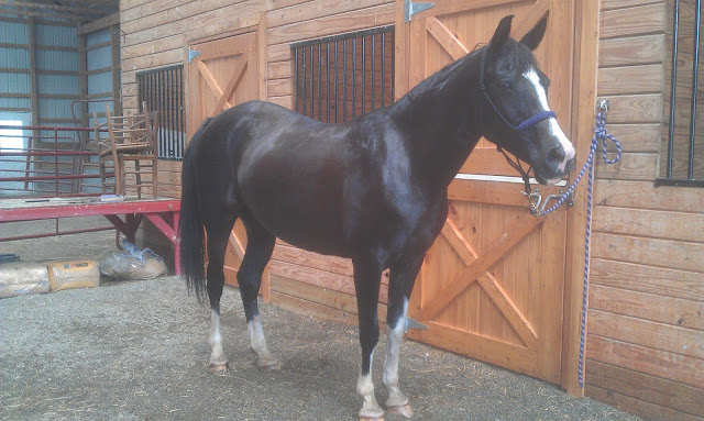 To top it off, she pulsed down again like a champ. We walked the last 1-2 miles home with a little bit of intermittent trotting when she wouldn't cooperate upon seeing her pasture mates. Upon arrival at the barn, I removed her tack and took her pulse. 69 bpm. Took 3-5 minutes to pour some water on her and scrape it off. Took her pulse again. 57 bpm.